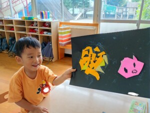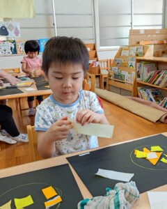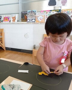 その丸の中を埋めるようにたくさんちぎって貼りました。
